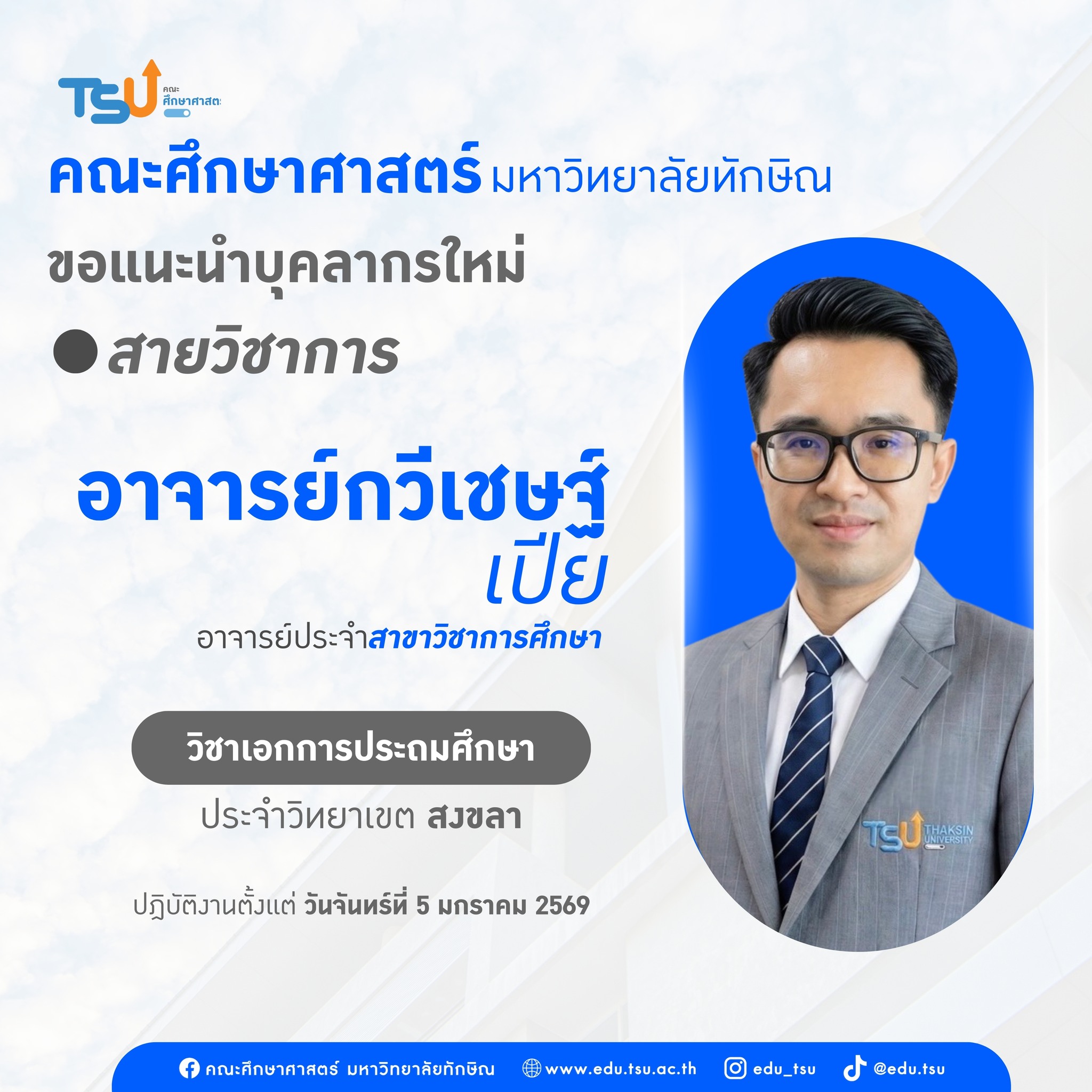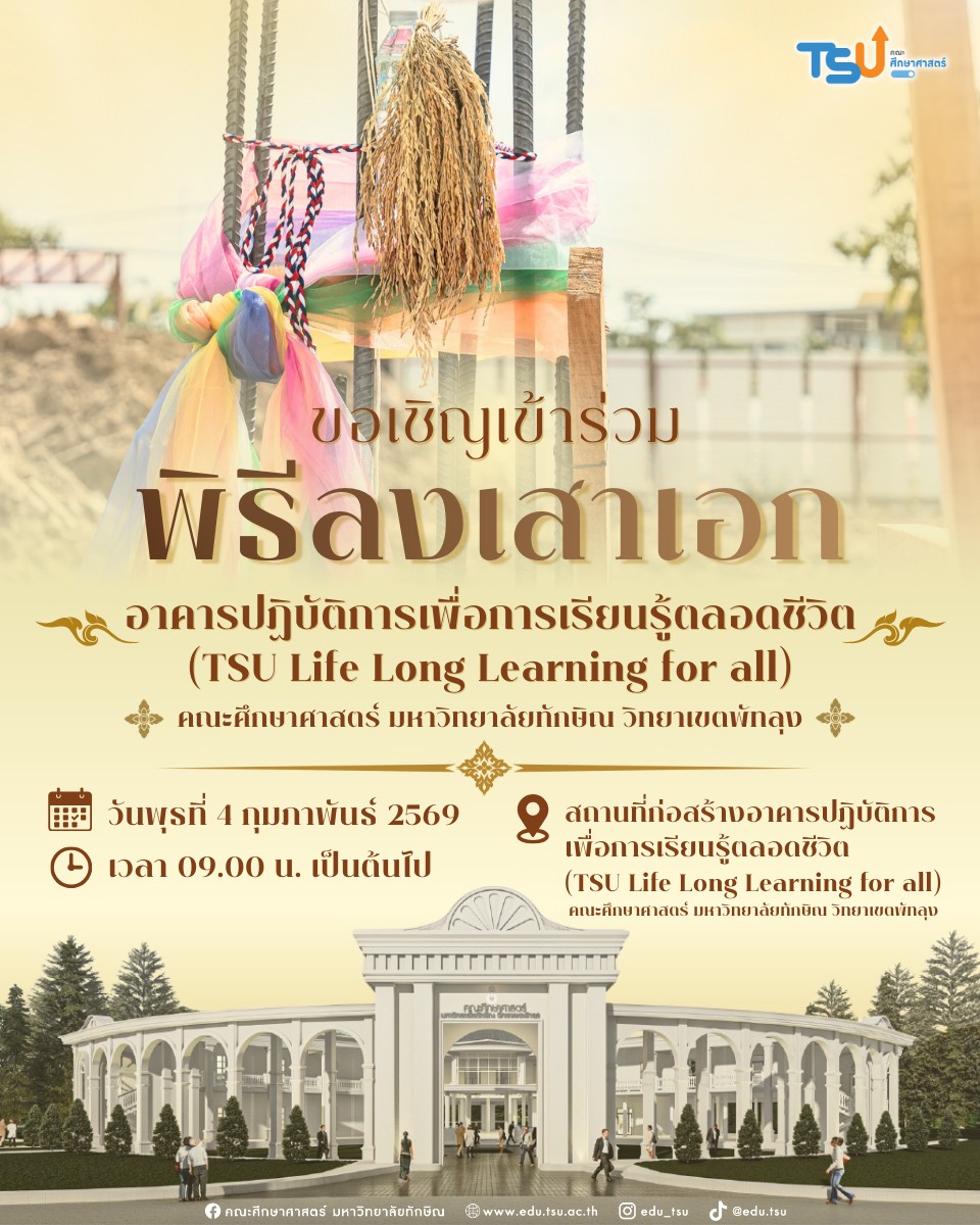 วิทยาลัยนานาชาติ มหาวิทยาลัยทักษิณ ขอเชิญเข้าร่วมโครงการพัฒนาศักยภาพบุคลากรทางการศึกษา  “Smart School Counselor: ยกระดับวิทยฐานะด้วยดิจิทัลและ AI”