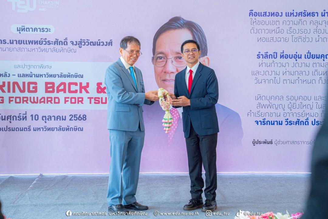 ผู้บริหารและบุคลากรคณะศึกษาศาสตร์ ร่วมแสดงมุทิตาจิตแด่ ศาสตราจารย์ ดร. นายแพทย์วีระศักดิ์ จงสู่วิวัฒน์วงศ์ อดีตนายกสภามหาวิทยาลัยทักษิณ