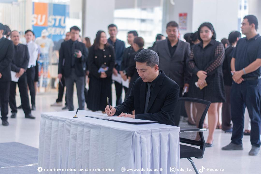คณะศึกษาศาสตร์สำนึกในพระมหากรุณาธิคุณอันหาที่สุดมิได้ ผู้บริหาร คณาจารย์ บุคลากร และนิสิตคณะศึกษาศาสตร์ มหาวิทยาลัยทักษิณ เข้าร่วมพิธีน้อมถวายความอาลัยและสำนึกในพระมหากรุณาธิคุณ สมเด็จพระนางเจ้าสิริกิติ์ พระบรมราชินีนาถ พระบรมราชชนนีพันปีหลวง