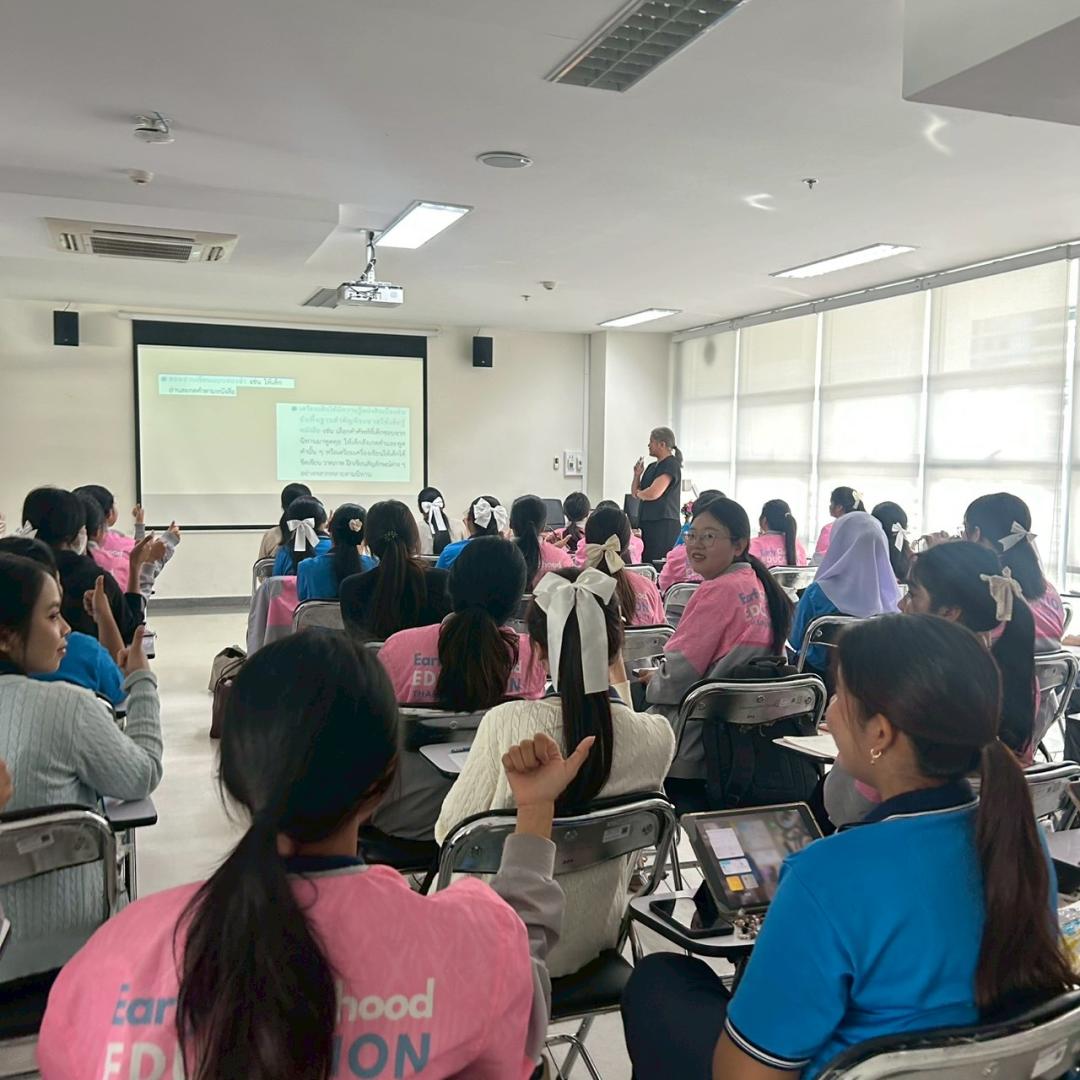 เป็นวิทยากรอบรมเชิงปฏิบัติการ ถ่ายทอดองค์ความรู้ด้านการบูรณาการภาษาและการใช้สื่อสร้างสรรค์สำหรับเด็กปฐมวัย