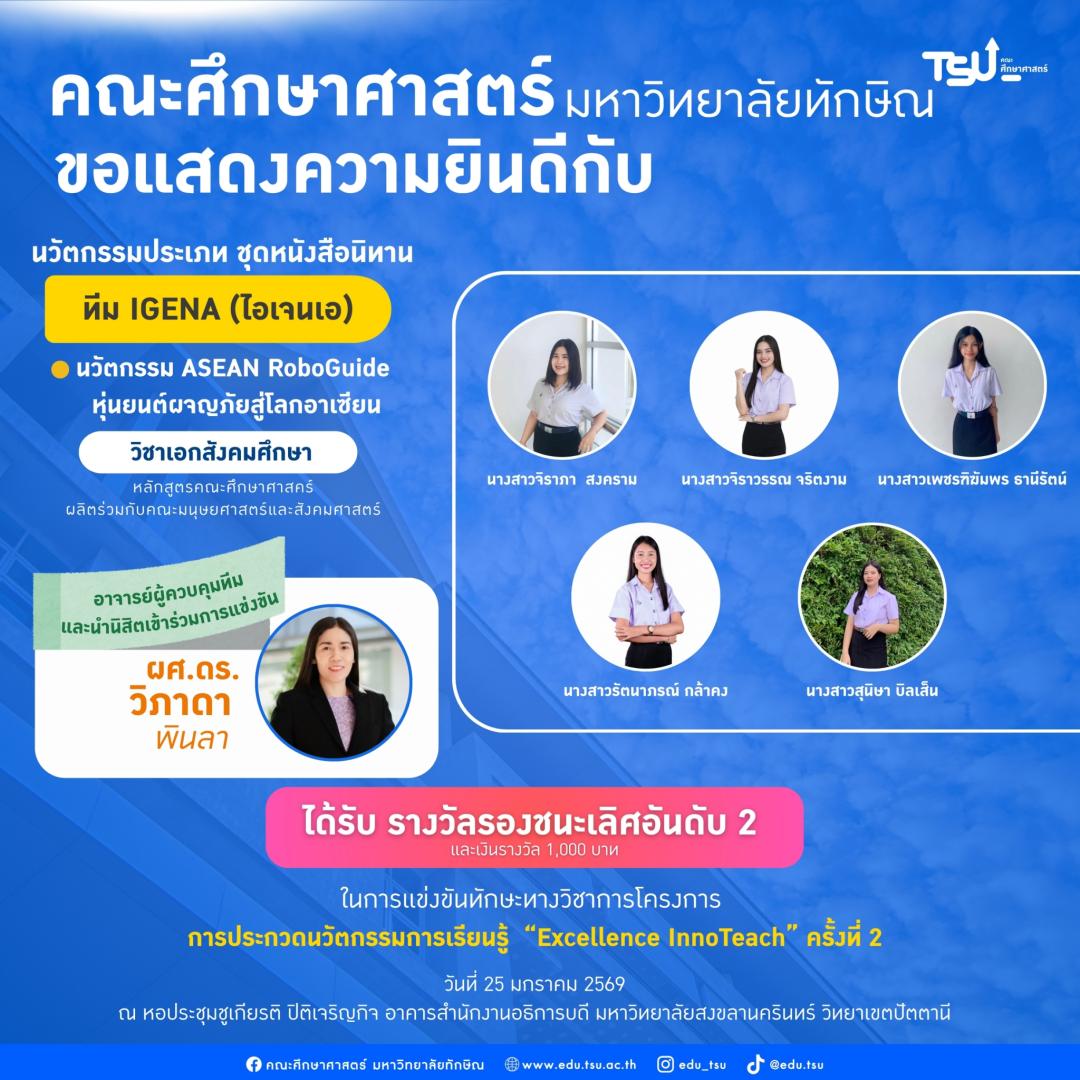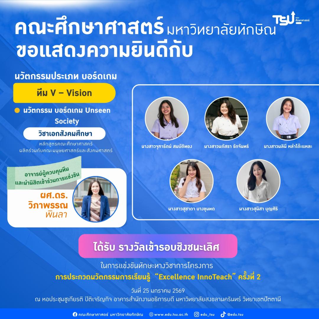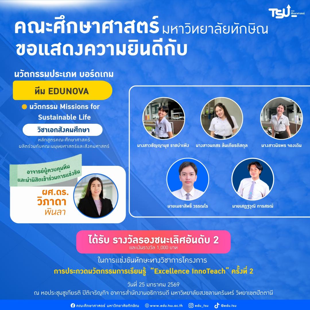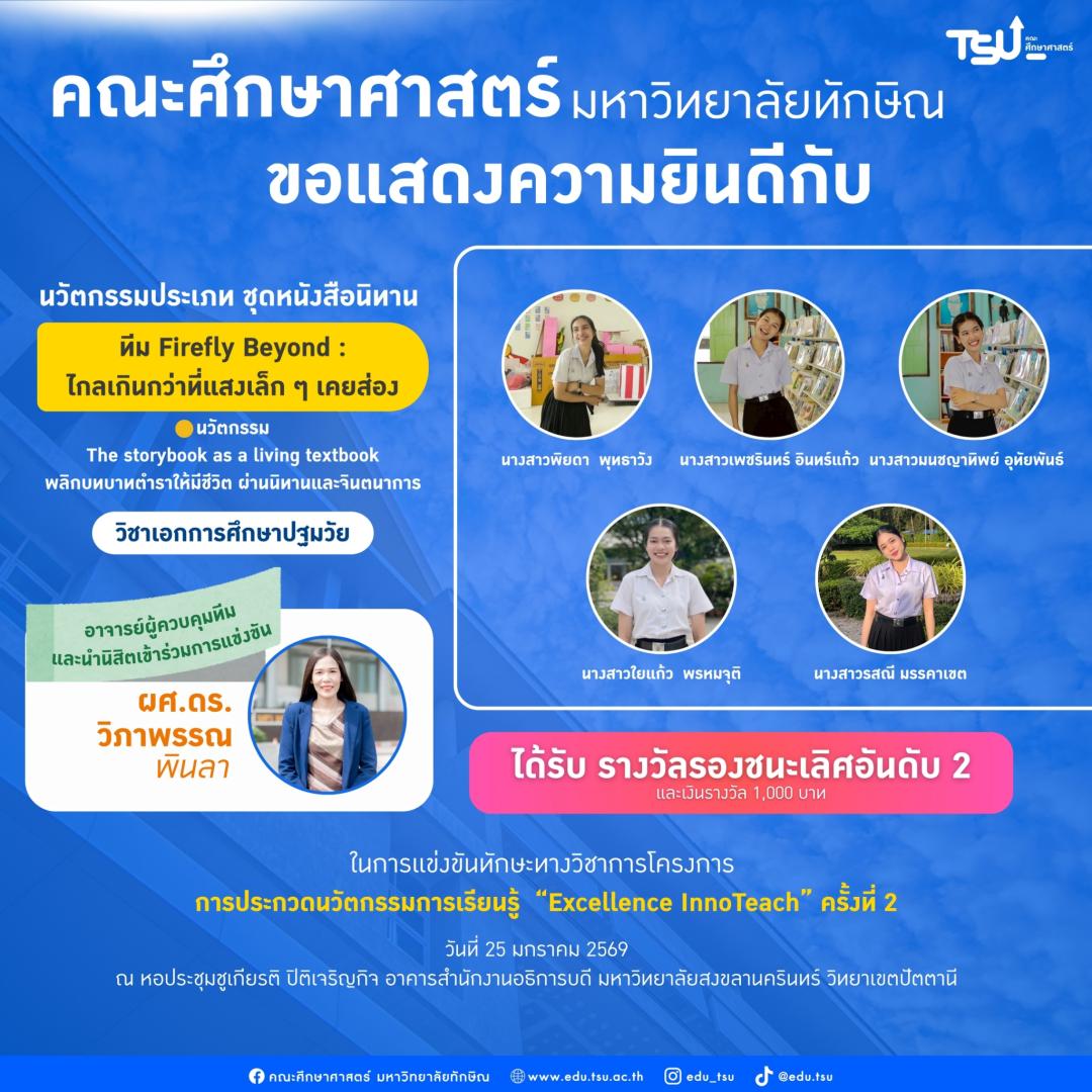 ขอแสดงความยินดี แก่นิสิตและอาจารย์ที่ปรึกษา ที่ได้รับรางวัลและผ่านเข้ารอบชิงชนะเลิศ จาก โครงการการประกวดนวัตกรรมการเรียนรู้ “Excellence InnoTeach” ครั้งที่ 2