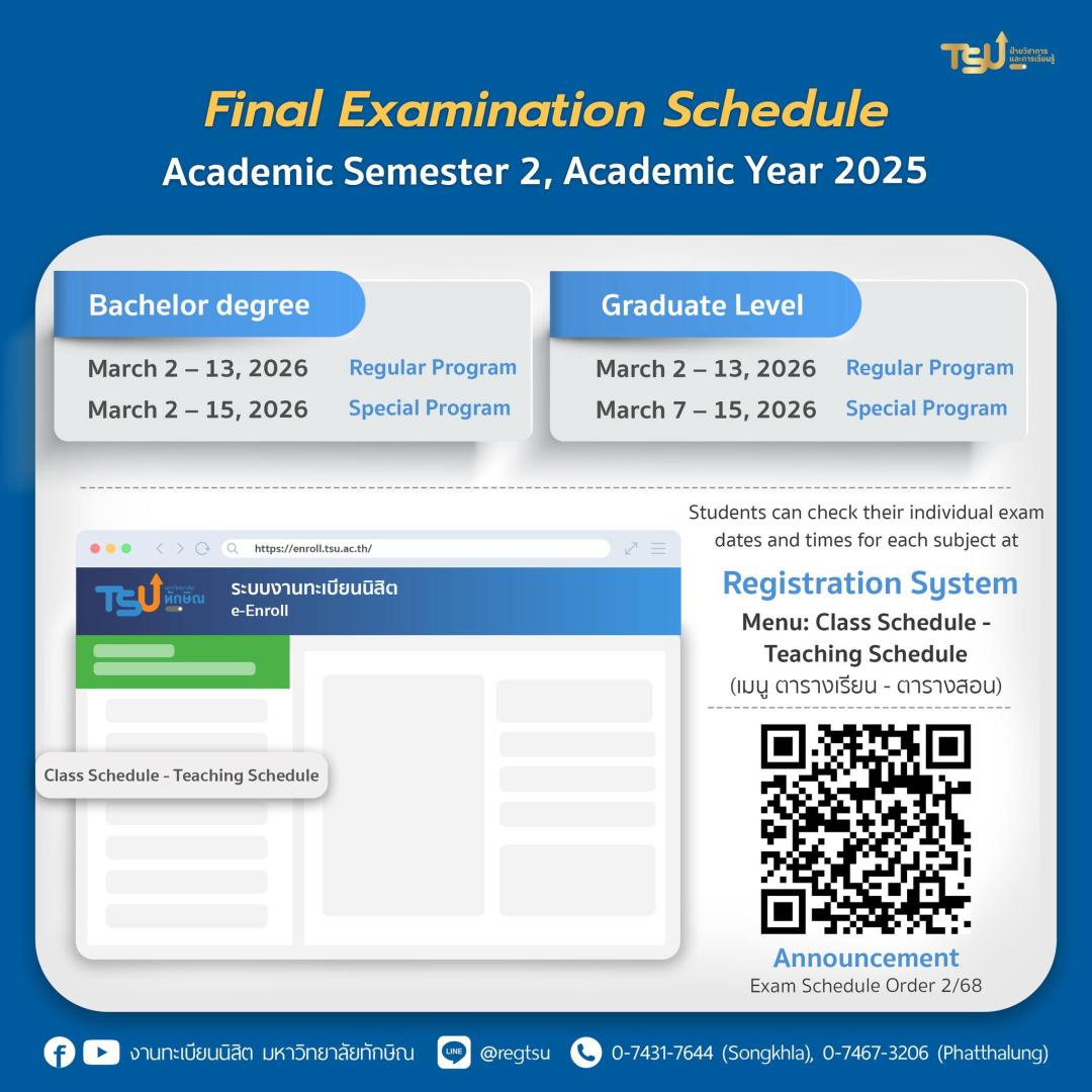 Facebook (Songkhla) : https://www.facebook.com/Registrar.TSU